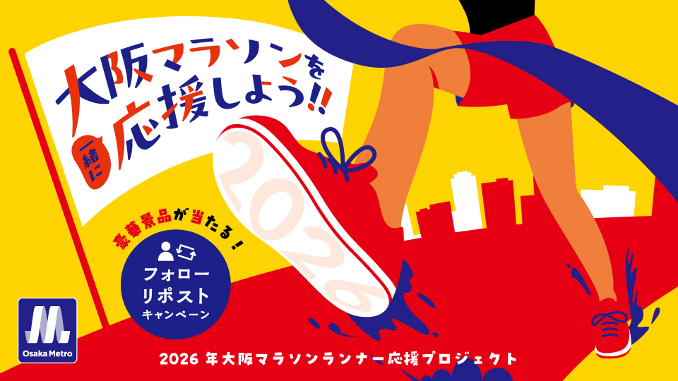 Osaka Metro 大阪マラソン キャンペーン 大阪メトロADERA Jan 2026 - GRAPHIC 15 Jan 2026 Creative Produce 神田 亮・友常 凌太郎・楽々 雛子 kazepro Art Director 藤澤 翔希 kazepro